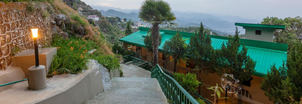 The 5.5-acre resort is perched on a cliff and the rooms below the main block provide mesmerising views of the picturesque Doon valley. Enjoy the tranquil surroundings and burn calories as you take the stairs up from your room to the restaurant to gorge on Garhwali cuisine.
