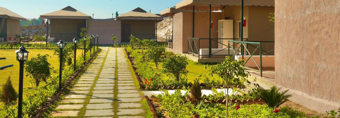 Located on the perimeter of the Sariska Tiger Reserve, flanked by the rugged Aravalli Mountain Range and lush wheat fields, Sterling ReWild Sariska, takes inspiration from the rocky landscape of the region creating an authentic experience with a luxurious yet rugged contemporary architecture as a tribute in canvas and stone. Classic-style stonework combines with modern tents to create a truly unique setting for a connection with nature. Enjoy upscale amenities including private plunge pools and outdoor shower areas.